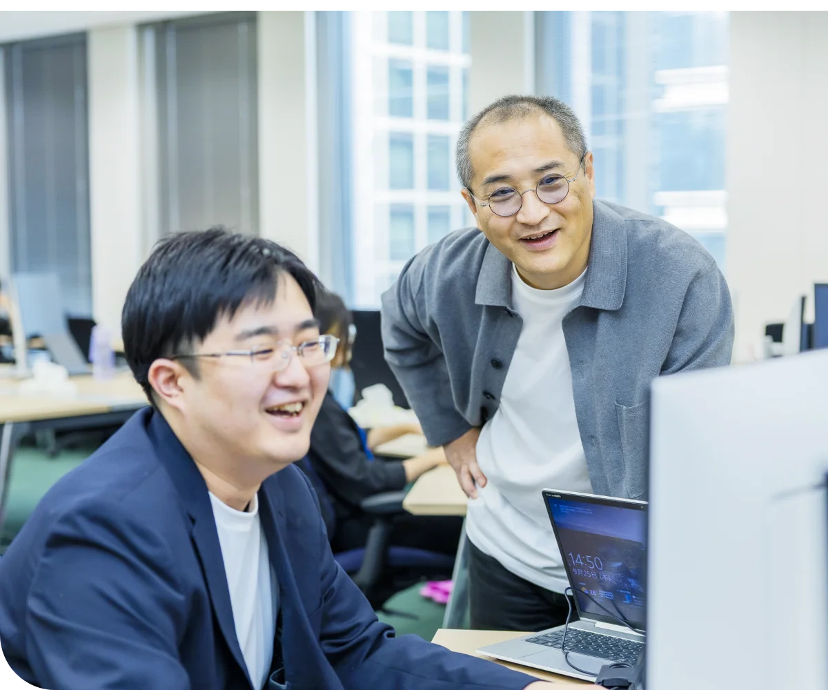 OJTを中心に、実際のプロジェクトを通じて実務スキルを磨く仕組みを導入。経験豊富な先輩やリーダーが伴走し、着実な成長をサポートします。